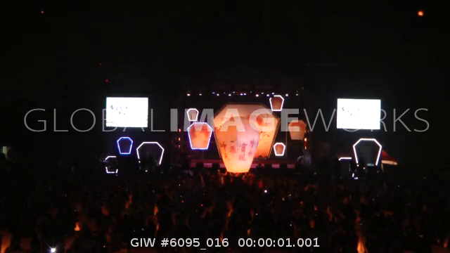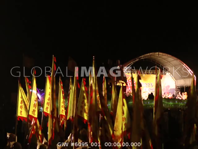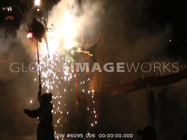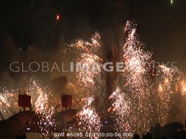 Big lanterns with fireworks moving at lantern festival in Miaoli, Taiwan
