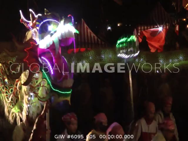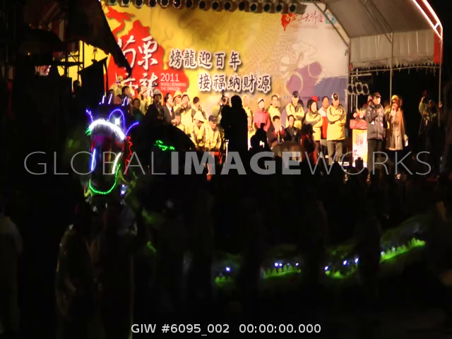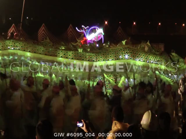 An illuminated big dragon lantern moving at lantern festival in Miaoli, Taiwan