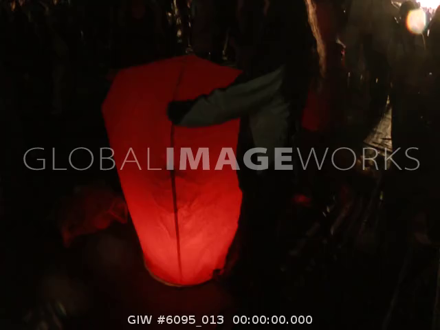 Big lantern flying up to sky at Sky Lantern Festival in Pingxi, Taiwan