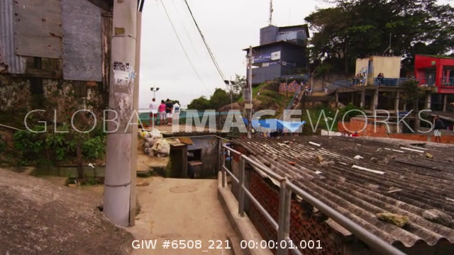 RIO DE JANEIRO, BRAZIL - JUNE 23: Slow tracking down a flight of stairs of soccer game in a favela