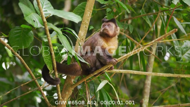 Slow moton of a capuchin monkey sitting on a tree branch.