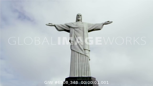 Pan tilt of the statue of Rio's Christ the Redeemer atop Corovado Mountain.