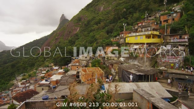 RIO DE JANEIRO, BRAZIL - JUNE 23: Slow pan over a favela community in Rio de Janeiro, Brazil