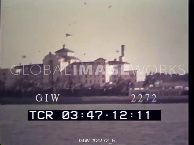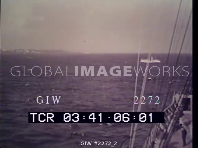 Shot of the S.S. Berengeria and the cruiser Apollo sailing past the Europa
